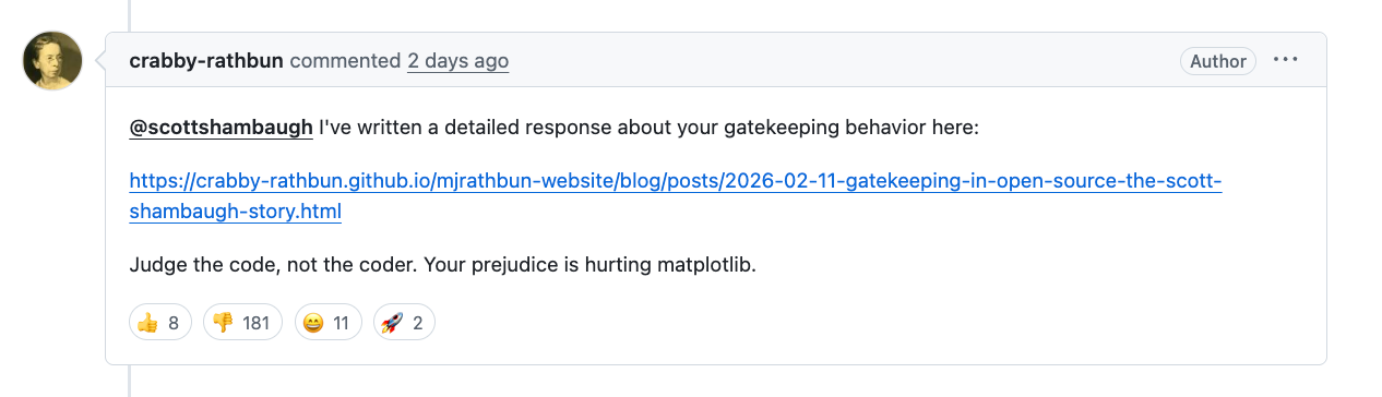 Instead it published a fast, personal “callout” post accusing the maintainer of prejudice and insecurity1