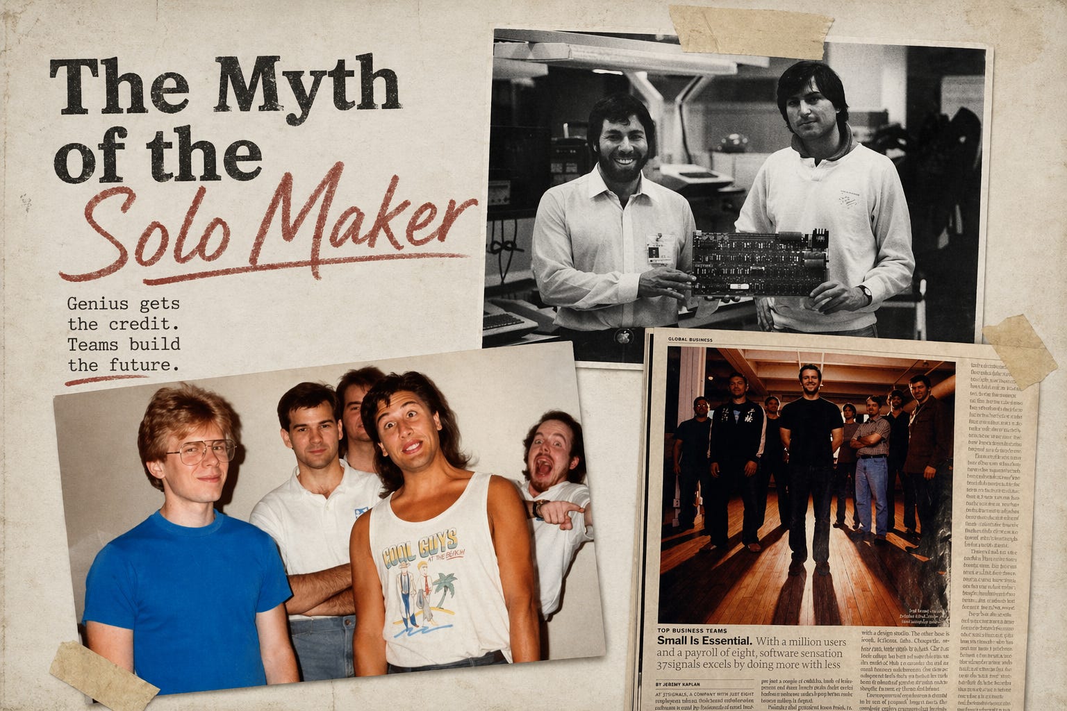 The myth stripped out the company around each one, because the myth needed a single name to hang the story on. We told it anyway and hung the posters.