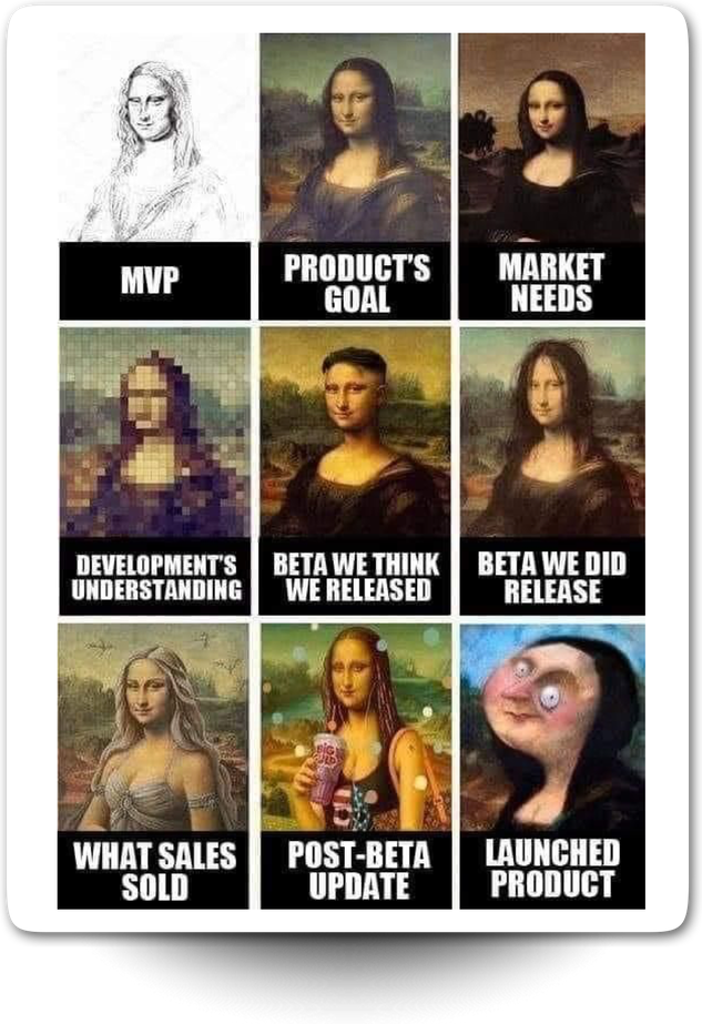 By the time it shipped, the original intent had been compressed, lossy-encoded, and re-interpreted so many times that the final product bears only ancestral resemblance to the initial vision.